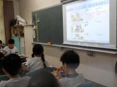 電気がついてなかったり、頭の影がノートに映っていて暗くなっていたり、子どもたちは気づいたことを積極的に発表していました。