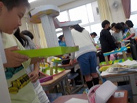 図工の時間に作ったコロコロ転がるおもちゃを友達と一緒に楽しみながら作品を鑑賞していました。