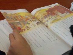 国語の時間「世界で一番美しいぼくの村」という物語文を学習しています。戦争の悲惨さとともに村の美しさが対比されています。