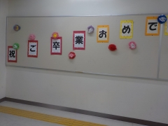 中央昇降口の掲示板には、「卒業おめでとう」という掲示があり、6年生の教室も誰もいない状況で寂しい限りです。