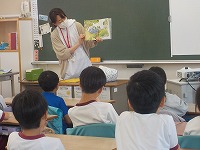 図書館ボランティアさんが今日は2年生に入り、読み聞かせをしていただきました。