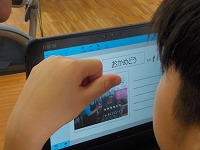 先日町探検に行き、見学させてもらったことをタブレットでまとめました。おかめ堂のたいやきや来来亭のとんてき自動販売機など常磐地区ならではのものを紹介していました。
