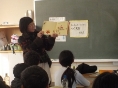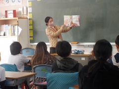 今日も図書ボランティアさんにお越しいただき、4年生の教室で読み聞かせをしていただきました。