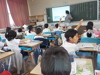国語科の時間、「たんぽぽのちえ」という説明文を学習しています。タンポポが仲間を増やすための工夫について文章を読みながら考えています。