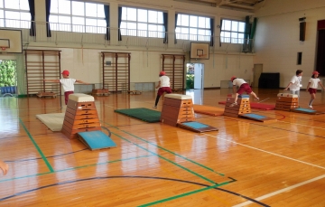 今日は雲一つない秋晴れの一日でした。運動会が終わり、運動場では高学年を中心にハードルの授業が行われています。心地よい秋風の中、ハードルと颯爽と跳ぶ子どもたちの元気な姿が見られました。体育館では先週よりマット跳び箱週間が始まりました。およそ1か月間、体育館のフロアーに跳び箱やマットを置き、どの学年も集中的に取り組みます。開脚跳びや閉脚跳びなど、自分でめあてをもって練習をしていました。