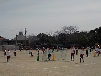 運動場を見ると3年、4年、5年が体育の時間運動場でサッカーを楽しんでいました。クラス数が多いのですが、卒業式で体育館が使えずこのような状況となりました。運動場を3つに分けた広さでしたが、限られたスペースで思い切りそれぞれの学年で走り回りサッカーを楽しんでいました。