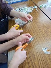 19人の方に参加していただき、集まったベルマークを切り取り、