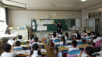 9月2日から4週間、2年1組に教育実習生が来ています。今日は大学の指導の先生にも来ていただき、実習生の授業の様子を見ていただきました。子どもたちと過ごす中で、子どもとの関わりや授業づくりなど、多くのことを学んでいってほしいと思います。