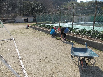 掃除の時間、草抜きです。
