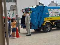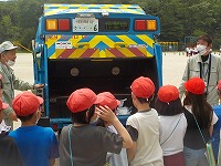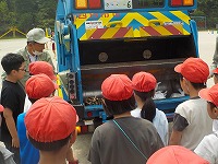 四日市市の環境事業課の方にお越しした抱き、四日市市のごみの現状やごみを減らす工夫について話をしていただきました。その後、運動場に出て、家庭から持ってきたごみをパッカー車に入れました。ごみを集める仕組みやパッカー車を実際に見ることによりごみを家庭からクリーンセンターに運ぶ工夫等について知ることができました。今月末には、クリーンセンターに出かけ、クリーンセンターの中での様子を確かめてきます。