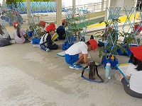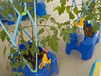 体育館横では、夏野菜の観察をしました。ミニトマトが実をつけていて喜んでいる姿が見られました。これから暑くなってきます。毎日の水やりを忘れないようにしておいしい夏野菜をつくっていってほしいと思います。