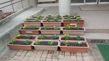 今日は朝早くからPTA環境整備部の方に来ていただき、職員室玄関前のプランターや校長室前の花壇、正門前から体育館にかけての花壇にパンジーやビオラの苗を植えていただきました。水やりは栽培委員会の児童とPTAの方を中心にお世話になります。たくさん植えていただいたので、今から成長が楽しみです。ありがとうございました。