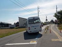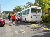 4年3組が今日は四日市スイミングにでかける日です。子どもたちは、素早く並びスイミングのバスに乗り込みました。