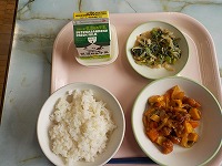 今日の給食は、ご飯、牛乳、酢豚、かみかみナムルでした。今日のメニューは中華風です。ナムルは茎わかめや大豆が入っていて、噛み応えのあるメニューでした。今日もおいしくいただきました。