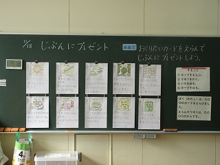 「じぶんにプレゼント」1年生の道徳科の授業です。