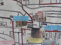 2回目の校区探検を終え、子どもたちはたくさんの発見があったようで廊下に大きな地図が掲示されていました。松本街道沿いの店には、おいしそうな自動販売機が見つかったようで私も興味津々に見ていました。