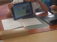 国語の時間「自然のかくし絵」という単元を学習しました。子どもたちは、自分たちで動物が命を守るためにどのように身を守っているのか、調べてタブレットでまとめました。