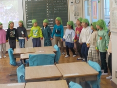 国語の時間、「おまつり」の詩を群読しています。校長に聞いてほしいというリクエストがあり聞かせてもらいました。
