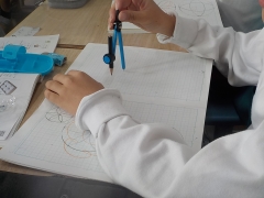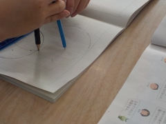 算数の時間、コンパスを使って円をかいていました。円を描き様々な形を描ききれいな形を真似ていました。