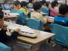 音楽の時間、鍵盤ハーモニカを使って子犬のマーチの演奏をしていました。1年生の成長は目を見張るものがあり、みんなしっかりと指を動かしてきれいな演奏ができるようになっていました。