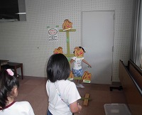 放課後、視聴覚室に移動児童館がやってきました。この取り組みが学校を回るようになったのは平成30年度からで、今年ですべての小学校を回ることになるそうです。40人ほどの子どもたちが来てくれ、プラバン工作、りすくんキャッチ、たこやきビンゴ、カプラのコーナーで楽しく遊んでいました。