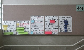 2階から3階に向かう階段の踊り場に、4年生の掲示場があります。