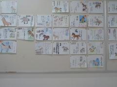 昇降口に今年の目標について午年のイラストが掲示されていました。午年にちなみ子どもたちが目標を書いています。