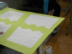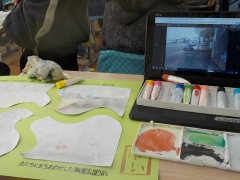 図工の時間、小学校生活思いを込めて6年間お世話になった学校の風景を描いています。毎日通った校門や昇降口、思い出の教室、遊具など、一人一人思い出も異なっています。自分たちの思いや感謝の気持ちを込めて最後まで丁寧に作品を仕上げてもらいたいと思います。