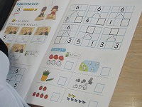 算数の時間、たし算、ひき算の学習に取り組んでいます。ブロックや絵を使って具体的にいくつといくつでその数になるのかを考えています。