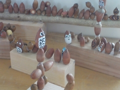 吉田山委員会が昨日の委員会の時間に山に落ちていたドングリを使って作品を作りました。昇降口に掲示されていて、子どもたちを迎えてくれていました。