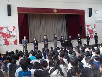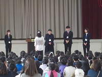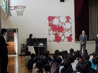 校長から各学年のがんばったこと、代表委員会がみんな仲良くなるために遊びを考えてくれたこと、あいさつリーダーとして毎朝元気に昇降口であいさつをしてみんなが元気にしてくれたことなど、自分たちで考えて学校のために動いてくれたことを続けてほしいと話しました。あいさつリーダーだけではなく、みんなで「笑顔とあいさつがあふれる学校」にしていくことを確認し、元気に始業式に再び集まれるよう、春休み過ごしてほしいと話しました。