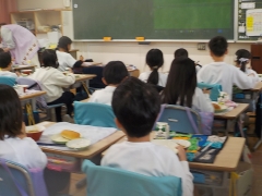 給食委員会からも今月の目標の周知があり、赤の食べ物の働きを意識して食べていました。