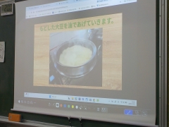 フライビーンズの作り方についてタブレットを使って見せてもらい、調理員さんが苦労して給食を作ってくれていることを改めて理解しました。