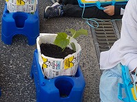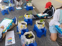 先日自分の鉢に植えた野菜を観察していました。子どもたちは葉の形や触った感じも含めてしっかり観察していました。