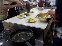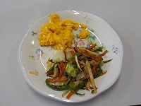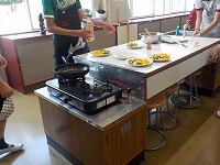 スクランブルエッグも火加減に気をつけて作りました。いい匂いが家庭科室からしてきました。子どもたちも食べるのが楽しみな様子です。