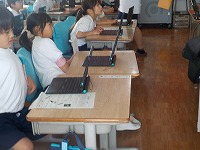 1年生にもようやくタブレットが配付され、パスワードの打ち方などを覚えました。子どもたちは自分のタブレットが配られてうれしそうにしていました。