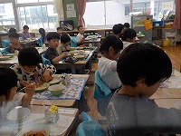 午前中に水泳があったクラスは、給食が待ち遠しかったようで食欲旺盛の様子でした。