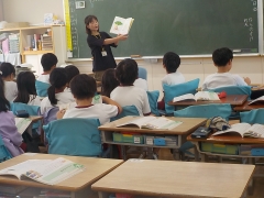 子どもたちが興味のある内容の話を読んでいただきました。英語の読み聞かせをされたのか、英語の質問をされているボランティアさんもみえました。