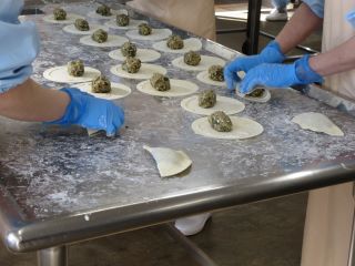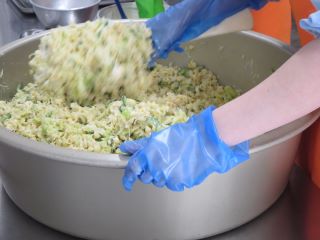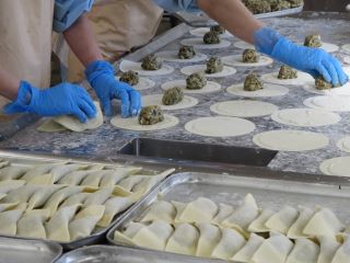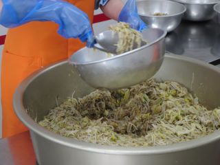 今日の津ぎょうざは、朝早くから給食室で調理員さんが一つ一つ心を込めて手作りしてくれました。