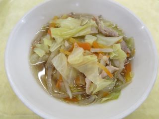 給食のラーメンは健康のために野菜をたっぷり使い、スープまで飲めるようにうす味に仕上げています。