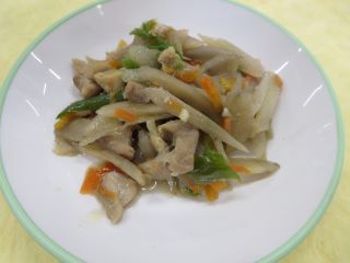 今日はごぼうの味や香りが苦手な子でもおいしく食べられるように、にんにくやオイスターソースを使って中華風のきんぴらにしてみました。