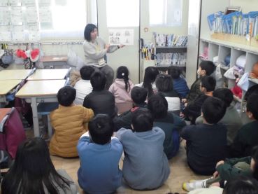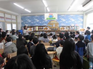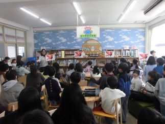 本校は読書活動を大切にしていることもあり、その推進に欠かせない図書ボランティアさんによる読み聞かせ会を開きました。