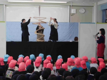 四日市市では、就学前教育・保育と小学校教育への接続期の取組を大切にしています。今回、その取組の一つのして、近隣の保育園、幼稚園の年長さんが本校で学校体験をしました。