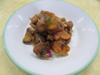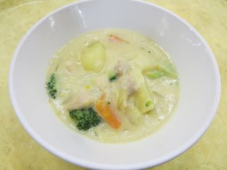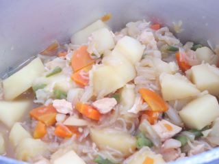 鶏肉、玉ねぎ、にんじん、じゃが芋、こんにゃく、いんげんをじっくり煮込みました。