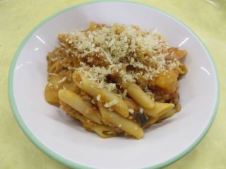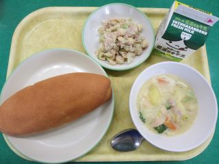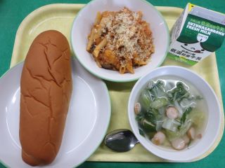きのこは食物繊維が多く、おなかの調子を整えるはたらきがあります。今日のミートグラタンには、エリンギとぶなしめじが入っています。秋の味覚のきのこをおいしくいただきました。