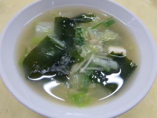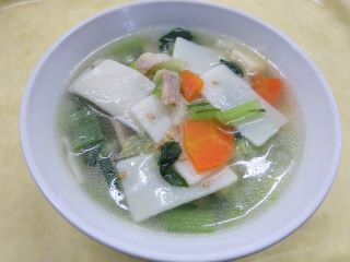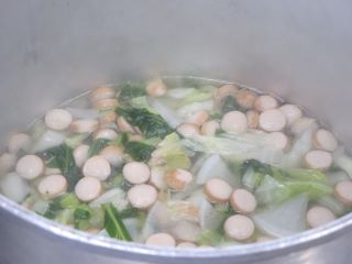 大根、白菜、チンゲン菜、ソーセージがたっぷり入った野菜スープです。