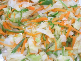 野菜は、キャベツ、にんじん、ピーマンを炒めました。