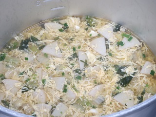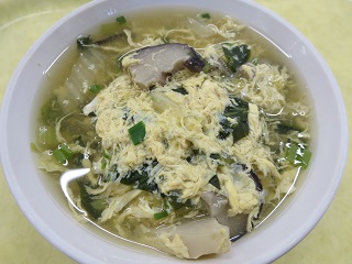 ・かきたま汁・・・卵、小松菜、しいたけ、水耕ねぎ