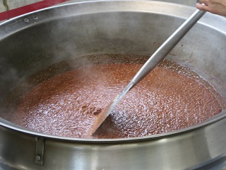 肉みそはみじん切りにした玉ねぎと豚ひき肉をじっくり炒め、赤みそ、さとう、みりんで味付けをして最後にすりごまをいれました。