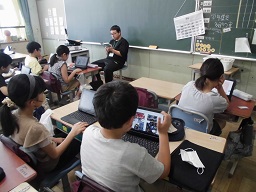 朝の会では、読み聞かせ・読書等、本に親しむ時間をとっています。自分で読みたい本を選書している子どもたちの中には、よっかいち電子図書館から選書している子どもたちも増えています。電子図書館の蔵書も充実していることから、学校や家庭で活用していただければと思います。